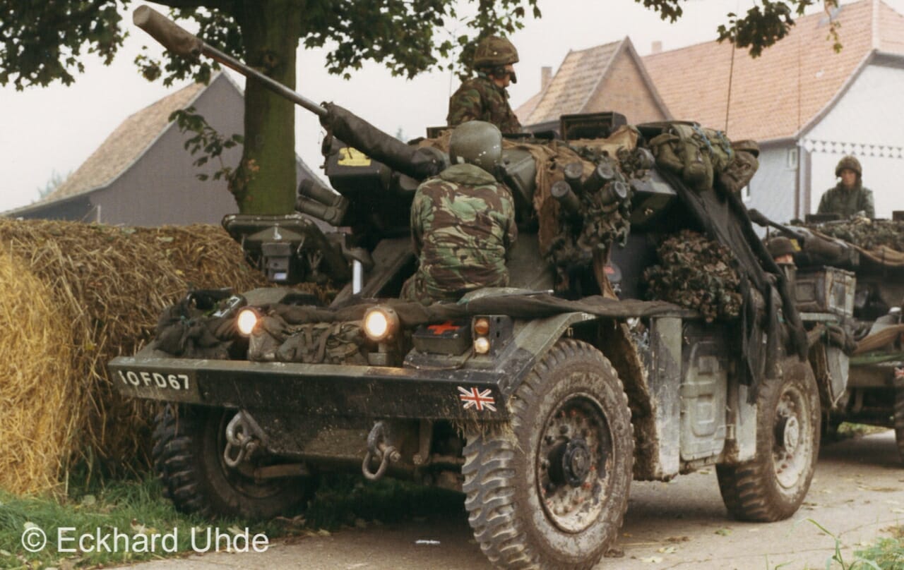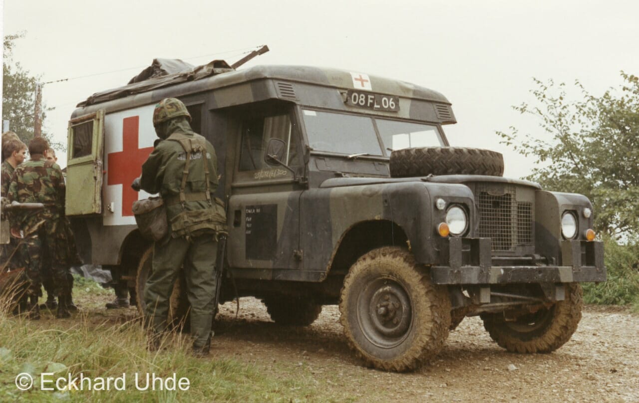 Mein Besuch bei den Einheiten beginnt am Donnerstag, dem 14.September. Am frühen Morgen treffen mein Begleiter Michael Neumann und ich im Public Info Hauptquartier in Derental am Solling ein. Mit einem kurzen Briefing stellt sich unser Begleitoffizier Captain Groves vor. Er wird uns in den nächsten Tagen zu den Brennpunkten von „Potent Gautlet“ führen. Wir fahren mit einem Land Rover Defender über den Solling und den Ith in Richtung Elze. Spätestens hier herrscht reger Militärverkehr auf den Straßen. Auf der B 3 geht es in nördlicher Richtung weiter. Gleich hinter Wülfingen müssen wir eine erste Kolonne mit Chieftain-Kampfpanzern der Royal Dragoon Guards passieren lassen. Wir fahren von der B 3 in Richtung Nordstemmen ab. Beiderseits der Straße sind gut getarnte Chieftain in Stellung gegangen. Sie sollen den Rückzug der noch östlich der Leine befindlichen Truppenteile sichern. Pioniere des 28. Amphibious Regiments haben unterhalb der Marienburg eine Bailey Festbrücke gebaut. Kolonne um Kolonne schiebt sich über die Bailey Bridge. Da Angriffe aus der Luft ausbleiben, können die östlich der Leine befindlichen Brigadeteile ohne nennenswerte Verluste das westliche Leineufer erreichen und im Bereich Oldendorf, Eldagsen und Völksen einen neuen Verteidigungsriegel beziehen…